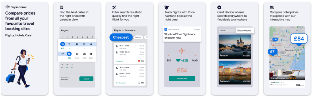 A must-have app for anyone looking to book flights. It allows users to search and compare flight prices from various airlines and travel agencies worldwide. Skyscanner’s user-friendly interface and extensive search options make it easy for travellers to find the best deals on flights, hotels, and even car rentals. The app’s flexibility to search for flights from any location to any destination, as well as its price alerts and flexible date search mean you’ll never search for flights another way again. Read our post here on finding the best flight deals.